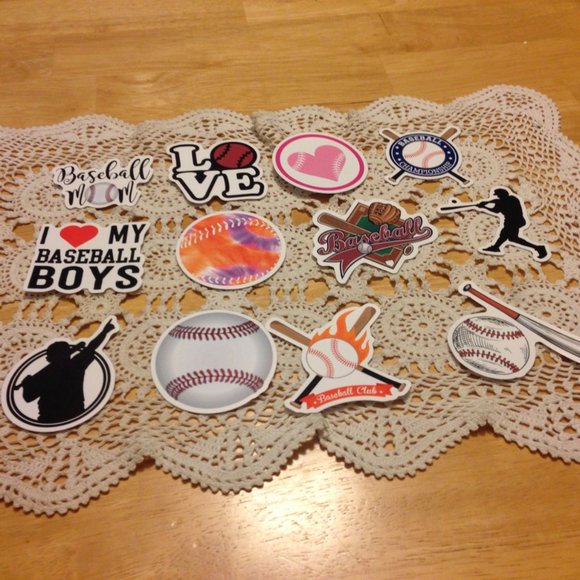 You get 12 new peel-off stickers in this listing. Two are specific to Mom's with baseball stars in their household. Keep the two Mom stickers and give out the rest to team members! Great for small craft projects or scrapbooks. Also great for hydroflasks, computer, lockers or cell phones.