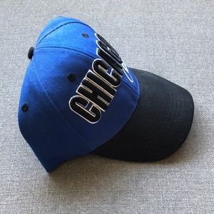 A baseball hat with Chicago logo on the front and a velcro to adjust when wearing. 80% acrylic. 20% cotton. Condition: 10/10 - Never worn.