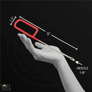 🧿 Instructions: Start at the end of the old lacing. It Is Important that you take out a little of the old lace at a time so you can follow the lacing pattern. Push the lacing tool through the hole and thread the lace through the hole on the end of the needle. Pull the needle and lace through and twist the lacing so it lays flat. Continue taking a LITTLE of the old lace out of the glove and follow the pattern to the end.
