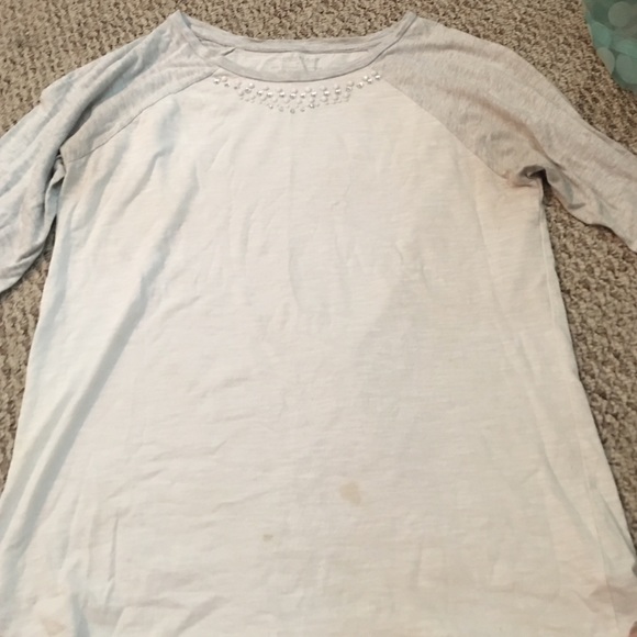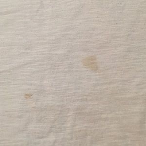 The is a tiny dr. Pepper stain on it but other than that it is in good condition. One of my favorite shirts