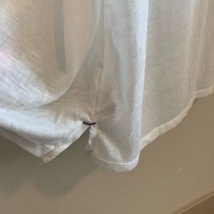 Sleeves come right above elbow. It’s never been worn. No flaws. It’s a mid length shirt. Longer than a mid length but not as long as most baseball shirts. Super soft and light material