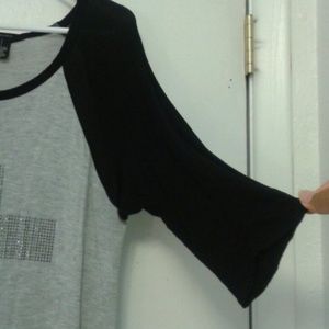 Baseball-Style tee, thinnish rayon material, with silver studs in a cross design, and loose bottom. Worn a few times.