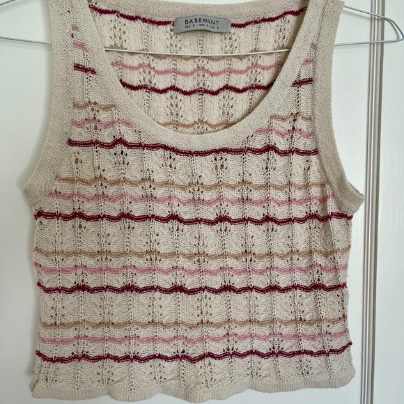Basement Cropped Crochet Striped Sweater Vest