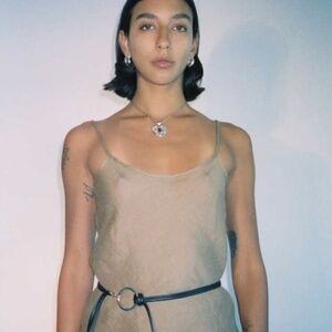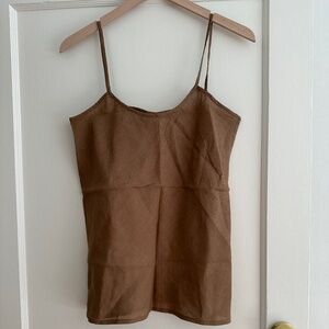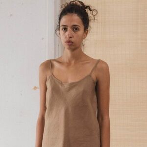 Baserange Dydine Top in Ocular. Soft linen top with a bias cut and adjustable straps. Slightly sheer.