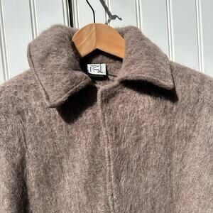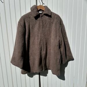Baserange's Pyrenees Coat is a super cozy and plush 100% wool coat in a beautiful marled, felted finish that has an amazing tactile and visual texture. Made in France, it is crafted from 100% brushed wool (Oeko-tex 100, Woolmark, SustainaWOOL). Features an oversized fit and hidden wooden buttons at the front as well as side seam pockets. The sleeves are the perfect not-too-long wrist length and have a wide opening. Buttons can be worn inverted as well. Designer color: Brown Mélange. Self (un) lined. Size Medium / Large. Measurements in pics. Brand new (unworn, no flaws) with original retail hang tags. $830 retail.