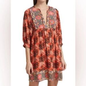 Ba&sh Gaia graphic-print crepe mini dress in an orange/multicolor floral pattern.