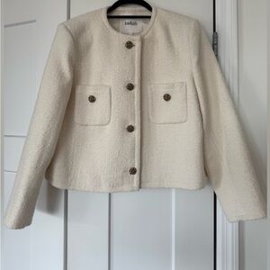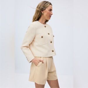 Chic cream blazer with gold button details. Ideal for versatile styling. Very classy in great condition. Can fit us 6