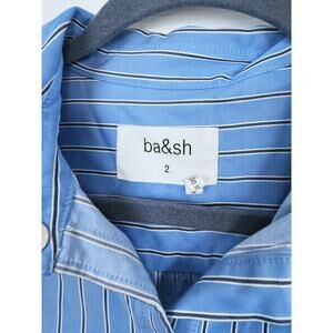Elevate your wardrobe with this chic Ba&sh blue striped 'Slow Chemise' top! With a retail value of $270, this top combines effortless style and quality craftsmanship. The classic blue stripes offer a timeless appeal, making it a versatile addition to any outfit. Perfect for both casual and dressy occasions, this top is sure to become a favorite in your collection. Grab it now and enjoy a touch of Parisian flair!