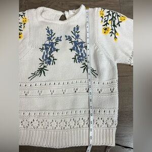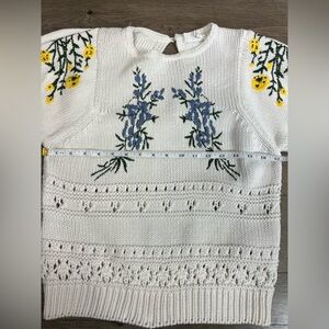 Condition - please view all photos - tiny spot marks noted. Just spot clean. Gorgeous floral sweater top. Please make your best educated decision if this fits you using the size chart.