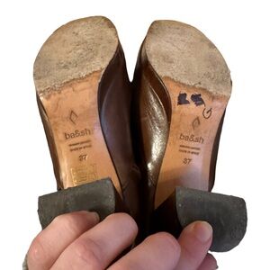 Ba&sh Chelbi Brown Leather Heeled Boots Size 37. Gently worn with some wear as pictured. A little sharpie on the bottom as pictured. Any damage can’t be seen when worn. Originally $495