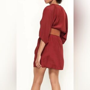 Incredibly soft and comfortable Ba&sh red textured dress. Zipper and button closure on the side. Pockets. Gorgeous piece that can be dressed up or dressed down. Size three but it runs big