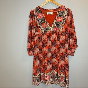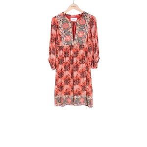Ba&sh Dress Women's 0 Orange Multi Floral 3/4 Sleeve V-Neck Cottage Core NWT