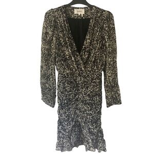 Ba&sh Robe Ezra Printed Long Bracelet Length Sleeve Ruched Chiffon Mini Dress