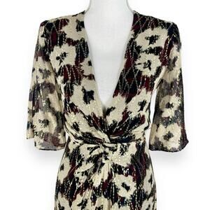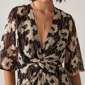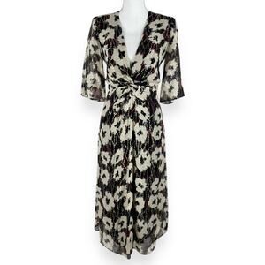 Ba&sh Kaz Metallic Floral Twist Knot Midi Dress Womens Small