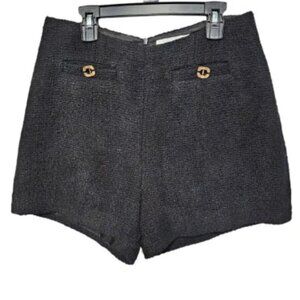 Ba&sh Lady Tweed Wool Shorts – Black with Gold-Tone Buttons – Size 1 (US Small / 4)