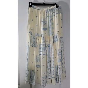 Ba&sh Lady Skirt Women Sz M Londer Midi Ecru Blue Folklore Block Print Bash EUC