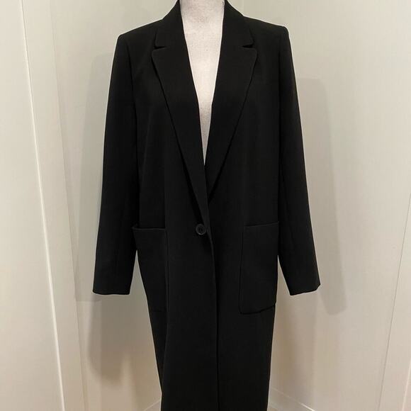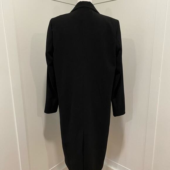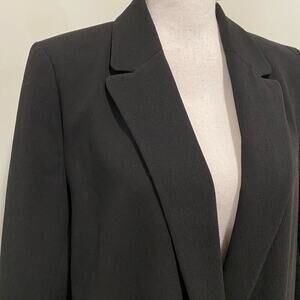 Absolutely stunning piece. I love this lighter weight option in a dress coat. Fully lined. One button closer. Front pockets. Back split is still sewn together. I suspect this was never worn and is NWOT. No obvious flaws or signs of wear. Size 3(L).