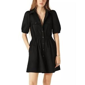Black. Side pockets. Puff sleeves. Nice stretch. Perfect basic.