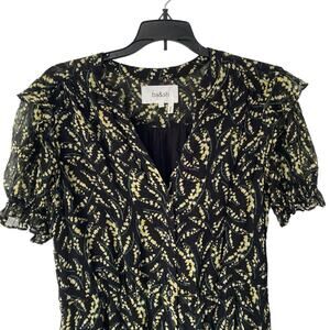 Ba&sh Matcha Black Yellow Floral Print Dress size small Puff sleeve Mini