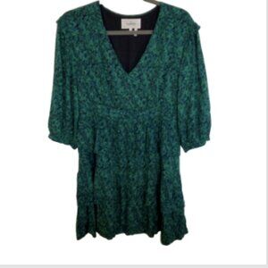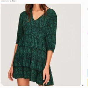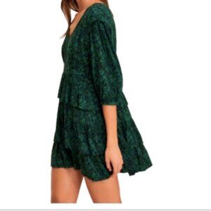Ba&sh Nina Tiered Green Printed Ruffle Lined Mini Dress Size L/US10