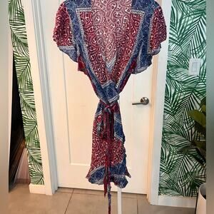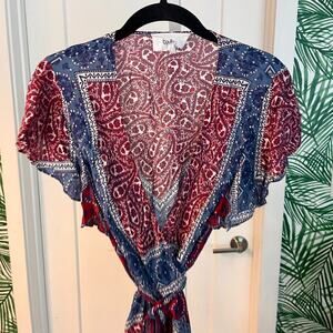 Ba&sh Printed Mini Ruffle Trim Mini Dress Medium