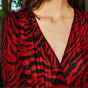 Ba&sh Red ‘Saphir’ Wrap-Effect Tiger Print Georgette Dress Size 2