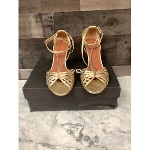 Ba&sh Women's 9 Gold Leather Chiara Strappy Sandals Gold Stiletto Heels LM2-19
