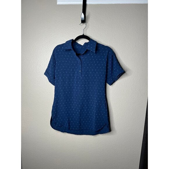 Bashafo Women's Blue Polo size small short sleeve collared polyester button