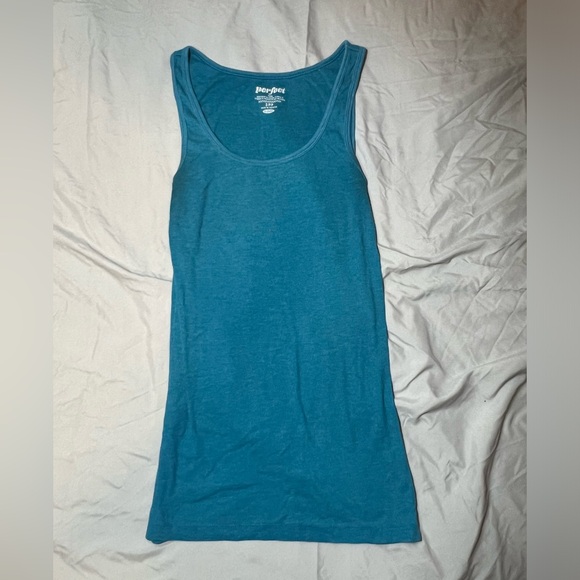 The basic teal blue tank is a perfect layer under and itchy sweater or in a Y2K street style outfit.