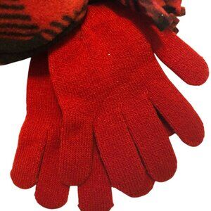 Basic Edition Girls Winter Fleece Hat & Mitten 2 Pc Set Red Black Unisex Plaid