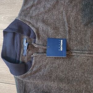 New With Tags Basic Editions Gray and Blue Light Zip Up Sweater size Medium