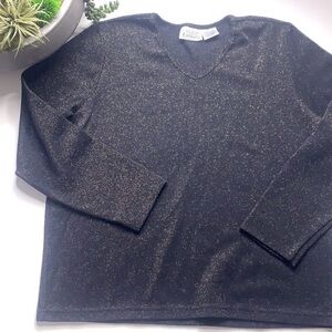 Basic Edition v neck black gold metallic pullover sweater XL women’s