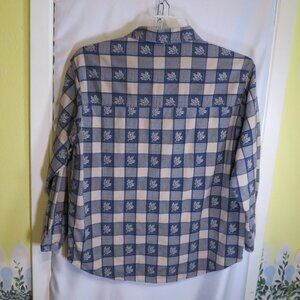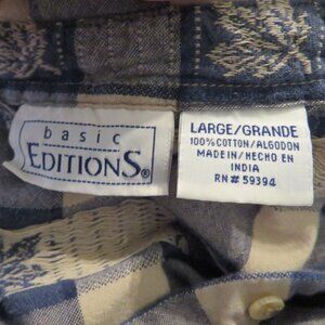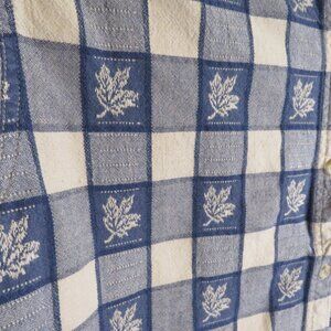 Basic Editions 100% Cotton Embroidered Leaf Plaid Blue & Tan - Large Relax Fit