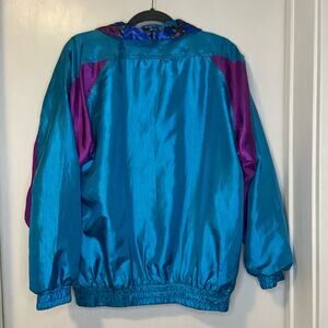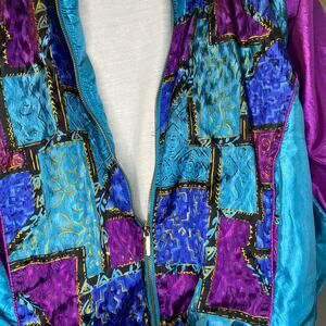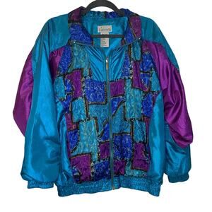Basic Editions 80s Bomber Zip Up Jacket Bright Purple and Blue Abstract 90s