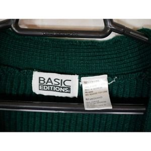Basic Editions Acrylic Long Sleeve Button Up Green Cardigan Sweater M Medium