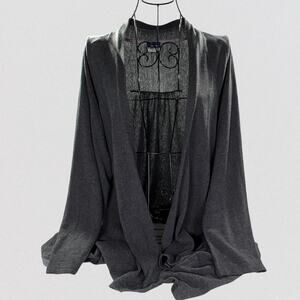 Basic Editions Asymmetrical Open Front Cardigan Plus Size Charcoal