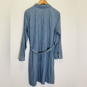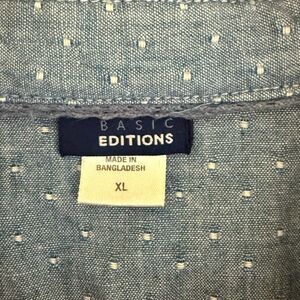 Basic Editions - Belted Denim Polka Dot Shirt Dress Long Sleeve - size L
