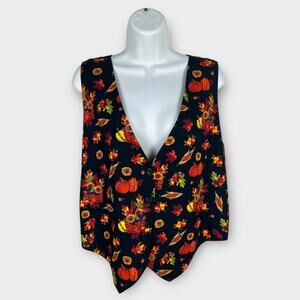 Basic Editions Black Colorful Fall Harvest Vest Thanksgiving 90s XL
