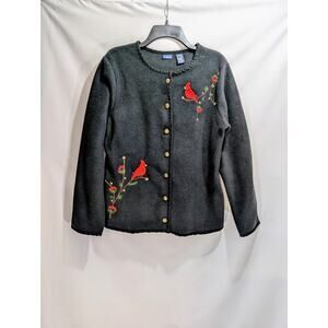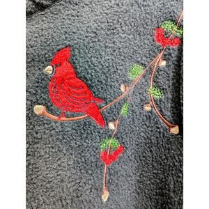 Basic Editions Black Fleece Cardigan Red Cardinal Embroidery Women’s Medium
