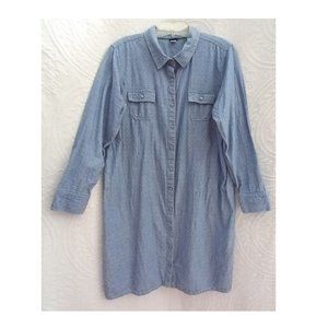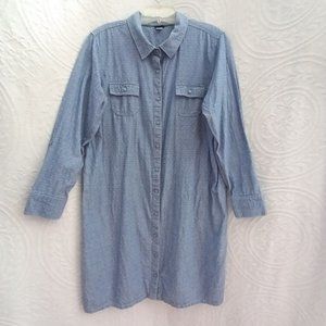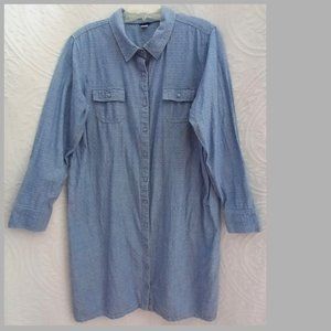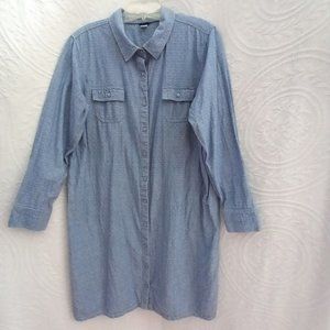 Basic Editions Blue Chambray White Swiss Dot Long Tunic Top Dress XL (T-214)