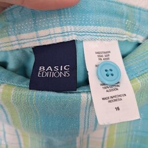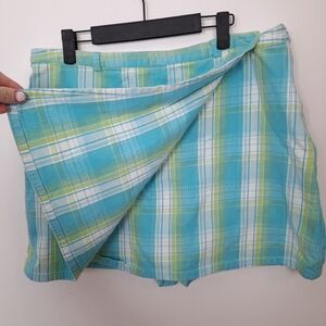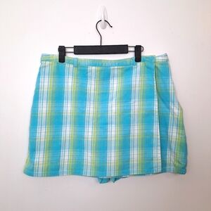 Basic Editions Blue Green White Plaid Spadkle Y2K Wrap Mini Skort Size 16
