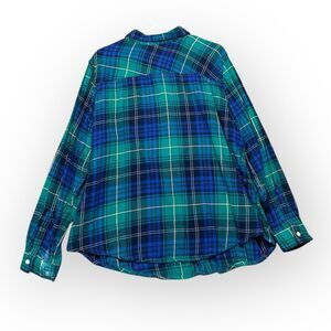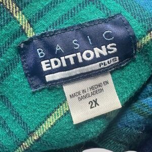 Basic Editions Button Down Shirt Women’s 2X Plaid Green & Blue Top