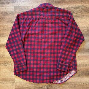 Basic Editions Casual Button Down Mens Large Red Plaid Rugged Flannel Shirt