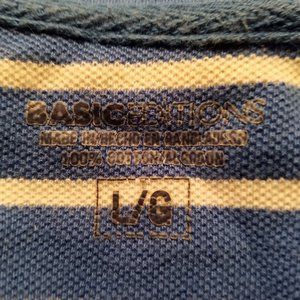 Basic Editions Classic Fit Men's Blue & White Striped Short Sleeve Polo Size LG
