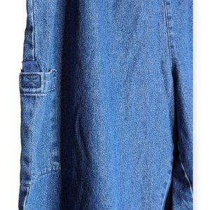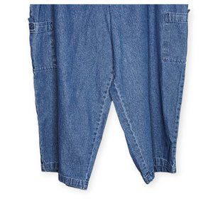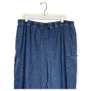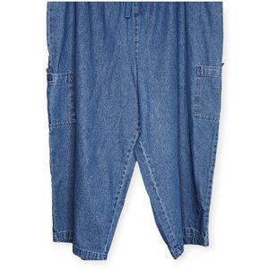 VGUC cropped jeans with elastic waist and pockets. There is a dark spot high up on the back, see pictures.