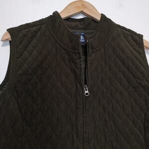 Basic Editions Dark Forest Green Quilted Corduroy Vest Pockets Zip Front Size XL