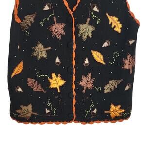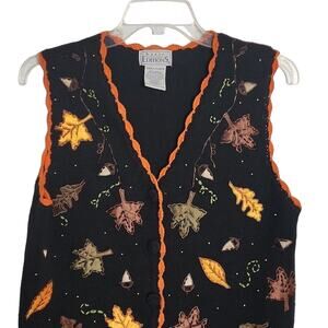 Excellent condition fall vest by Basic Editions. Beaded detailing with fall leaves