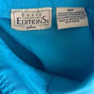 Basic Editions Floral Embroidered Button Up (Size: 18W, Color: Blue)