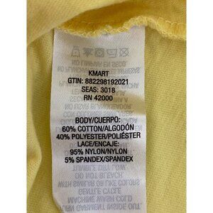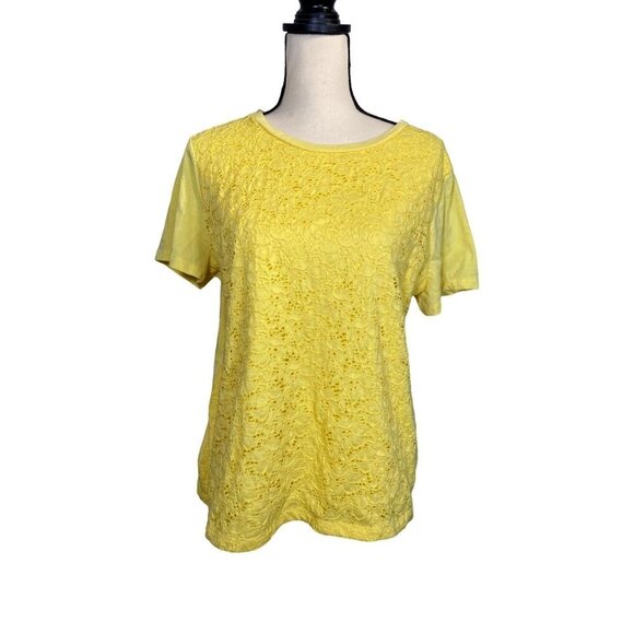 Basic Editions Green Yellow Floral Lace Front Crew Neck Short Sleeve Top Size XL