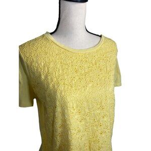 Basic Editions Green yellowFloral Lace Front Crew Neck Short Sleeve Top Size XL